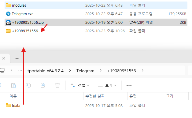 구매한 포터블 전용 압축 파일을 다운로드하고, 압축해제후 폴더 안에 있는 tdata 폴더를 Telegram.exe 파일이 있는 위치로 옮겨주시면됩니다.
